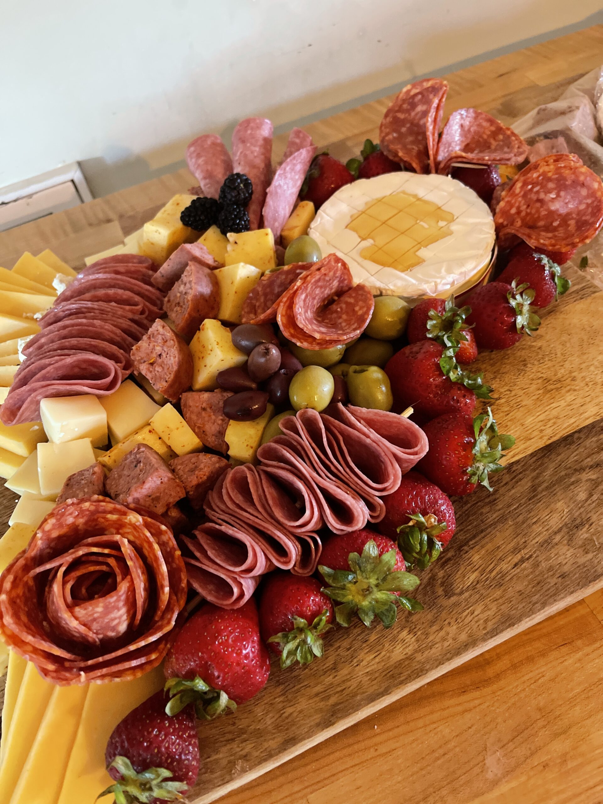 After viewing the charcuterie boards, watch my YouTube video to learn how to create a salami rose out of a shot glass!