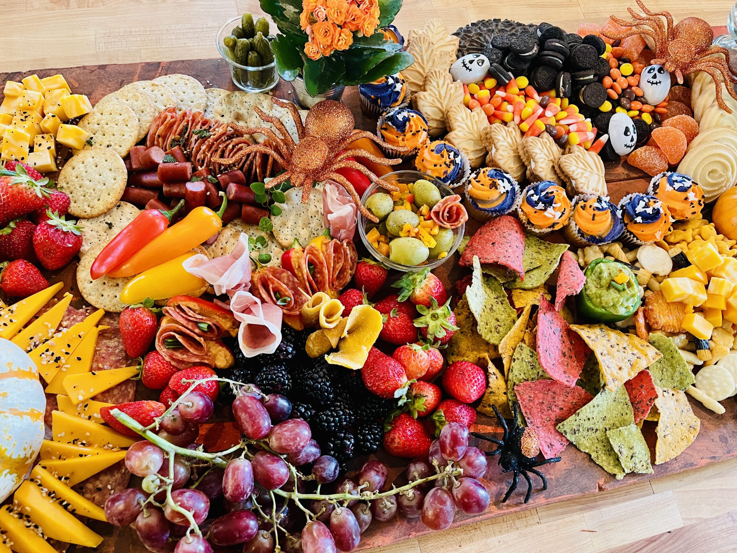 Welcome the fall season with the delectable taste and warm beauty of these charcuterie boards! These graze boards are elegantly done with an array of sweet and savory selections sure to wow your guests. Visually stunning, with rich Autumn colors from foods with tastes and textures that invite your guests to indulge and enjoy. Featuring a few spooky “charbooterie” boards for Halloween, get inspired to welcome the season with your own culinary masterpiece. Get together with friends and family and create an edible masterpiece, or feature one at your next fall event.
