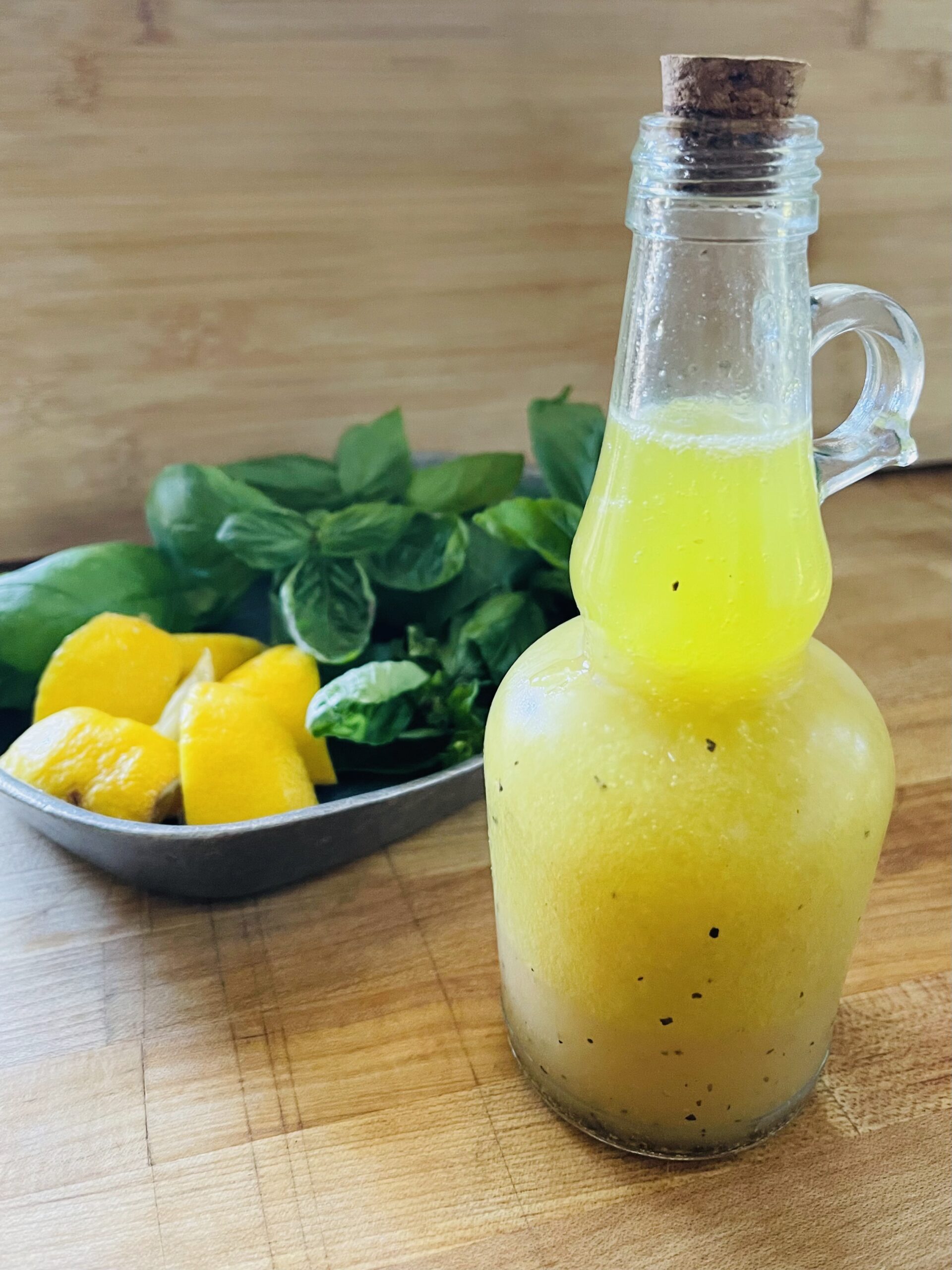Tangy lemon and sweet basil are perfectly paired in this bright vinaigrette dressing recipe. Endlessly versatile and flavor-rich, toss it into greens, a fresh fruit salad, or a glaze for chicken and seafood.