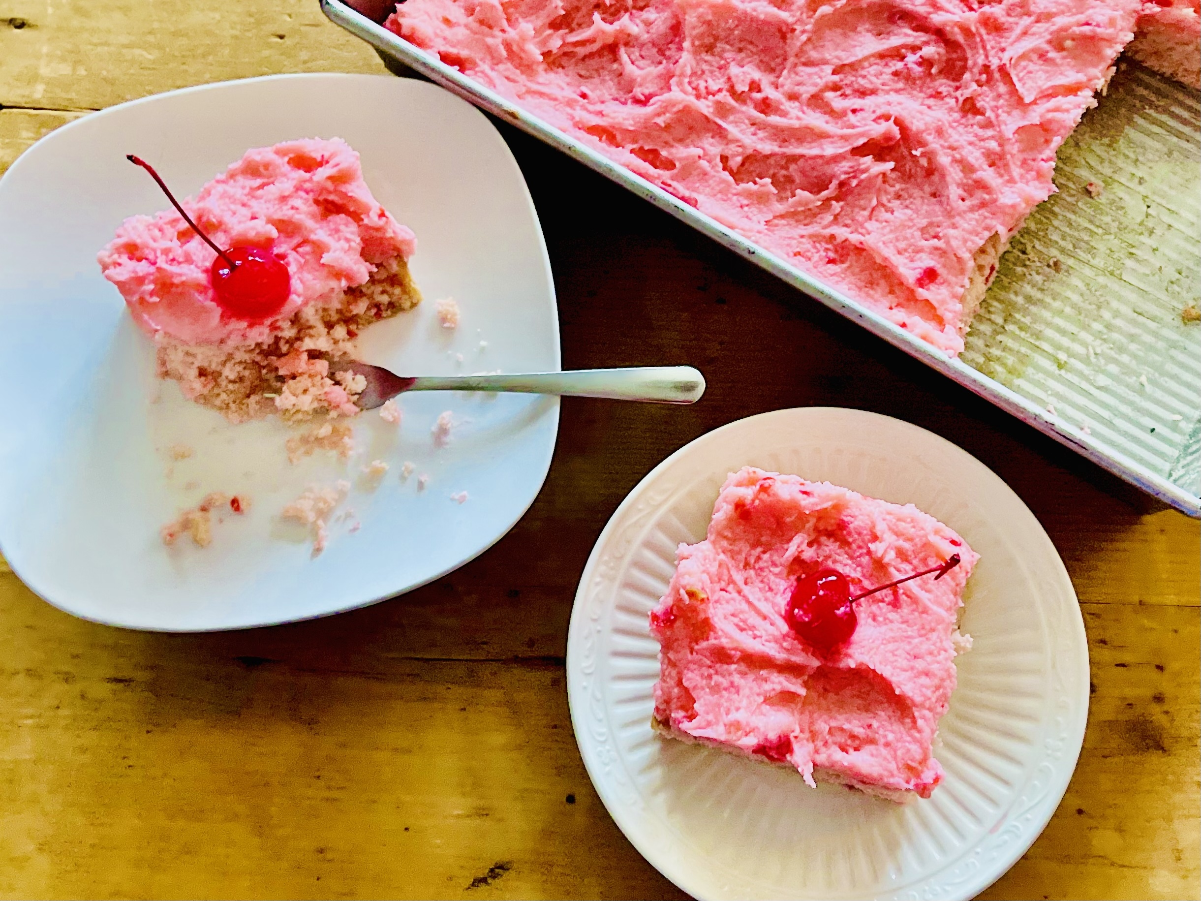 Once completely cool, frost with Cherry Buttercream Frosting.